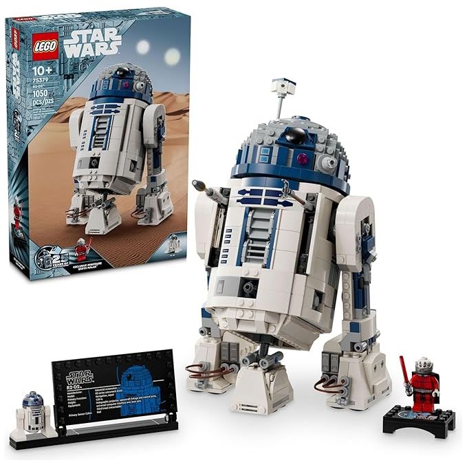 Invite the most beloved droid in the Star Wars™ universe into your home with this playful, buildable model. Rotate R2-D2s head and attach his third leg when its time to move. You can also connect his iconic radar and tools. Showcase your creation with the R2-D2 information plaque, an R2-D2 LEGO® figure and a special LEGO Star Wars 25th anniversary minifigure of Darth Malak with a display stand.